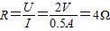 当U′=0时,I′=0,但电阻R的阻值不变,仍为4Ω.
