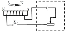 请在如图所示的虚线方框内,画上适当的电器元件,与框外的通电螺线管和开关组成一个闭合电路,使此电路在开关S