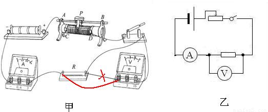 解答:解:(1)由图可知,电压表并没有和待测电阻并联,电压表短路了.如图甲.