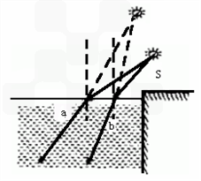 如图所示,a、b为岸上灯泡S发出的光线射入潜水员眼睛的其中两条,请作图找出潜水员看到岸上灯泡的位置S