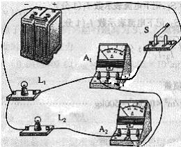解答:解:弄懂电路图的连接方式:L1与L2并联,开关放在干路,电流表1放在干路,因为干路中的电流等于0.5A+0.4A=0.9A,故应选大量程,电流表2放在L2的支路.根据电流的实际情况可选小量程.具体连接如图: