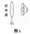 在探究人耳怎样听到声音时,可以用肥皂膜模拟人耳的鼓膜。如图1所示,当喇叭发声时,肥皂膜将