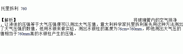最早测出大气压的值的科学家是意大利的 ________,他测出大气压的值相当于 ________mm高的水银柱产生的压强.