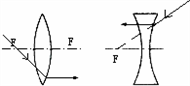平行于主光轴的光线经过透镜后会聚于焦点;过光心的光线其传播方向不变