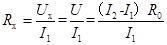 试题分析:实验中没有电压表,电阻R0、Rx并联在电路中,通过开关闭合与断开,使电路处于两种状态,闭合开关S1,断开S2 ,读出电流表的示数为I1,此时只有Rx的简单电路;闭合开关S1、S2,读出电流表的示数I2,此时电阻电阻R0、Rx并联,电流表测得是通过R0、Rx的总电流,故通过R0的电流I0= I2-I1,则电源的电压U=U0=I0R0=(I2-I1)R0,因为电源电压不变,故Rx的阻值