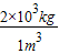 解答:解:在图象上取体积为1m3,该物质对应的质量如图,m=2×103kg;
