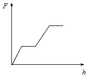 甲图中,立方体木块下端用一段细线与之相连,细线的另一端固定在容器底部.向容器中慢慢加水,直到装满容器,如图乙和丙所示.请在丁图中作出在此过程中木块所受浮力F随水位h变化的大致图象。