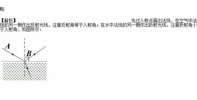 入射光线AB由空气斜射入水中,请作出反射光线和折射光线的大致方向.