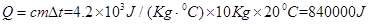 分析:水的比热容大,这样才可以用少的水吸收更多的热量使发动机冷却。水吸收的热量![]()