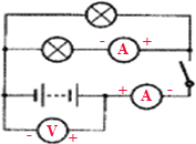 电流表在电路中相当于导线,与被测用电器串联,并且电流必须从电流表的正接线柱流入,负接线柱流出;