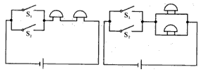 一个学校两个教学楼一个电源,每个楼各有一个开关,一个电铃,要求:闭合任何一个开关两个铃都响.怎样设计电路.