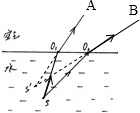解:由图可知,O1A为折射光线,因S为水中一发光点,则连接SO1即为入射光线,连接S′O2,并延长,则O2B即为折射光线,如图所示: