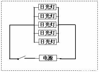 教室内有五盏日光灯,用一个开关控制,请画出其电路图:要求用“