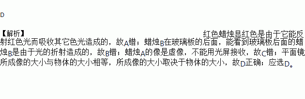 A. 红色蜡烛看上去是红色,是因为它吸收红光,反射其它色光造成的
