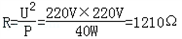 答:通过灯泡的电流为0.18A,正常发光的电阻为1210Ω.