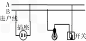 如图所示,是家庭电路的连接示意图,A是火线,B是零线,为了用电安全,将插座和电灯及开关接入电路.