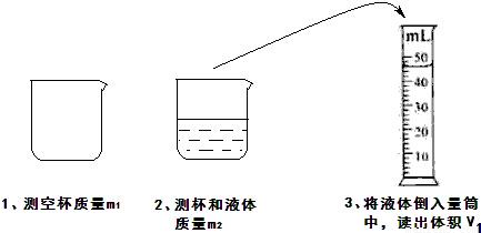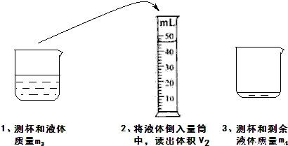 【答案】分析:本题考查测液体密度的测量方法及测量中引进误差的分析.液体的体积可以直接用量筒测出,而质量要测两次,即杯的质量和杯加液的质量.为减小误差,所测质量和所测体积必须是同一部份液体.