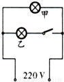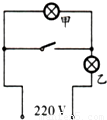 【答案】分析:根据P=I2R可知,甲灯泡的实际功率远小于乙灯泡的实际功率,即甲灯的电阻远小于乙灯的电阻;当把指示灯与灯泡串联时,由于指示灯的电阻过大,相当于断路,所以灯泡几乎不发光(也可根据串联分压原理来理解).那么灯泡正常发光时,可用导线把指示灯短路;而灯泡熄灭、指示灯亮时,可将并联的导线断开,使得两灯串联.因此只需将开关与指示灯并联即可,据此判断.