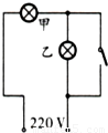如图所示,家庭照明灯的一种按键开关上常有一个指示灯.在实际使用中发现:当开关闭合时,照明灯发光;开关断开时,照明灯熄灭,指示灯会发出微弱光,以便夜间显示开关的位置.根据这种按键开关的控制特性,能正确表示照明灯(甲)和指示灯(乙)连接方式的电路图是图中的( )