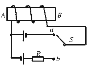 如图中的开关S由触点a转动到触点b时,通电螺线管的磁性强弱及B端的磁极变化情况是