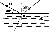 【答案】分析:一束光线由空气射到水面时,既要发生反射,又要发生折射,反射角等于入射角,折射角小于入射角.反射光线与水面的夹角为30°,则入射角和反射角均为60°.