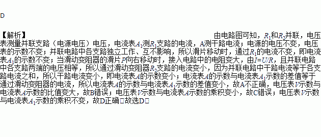 在如图所示的电路中,电源电压保持不变,闭合电键S,当变阻器的滑片P向右移动时,不变的是 ( )
