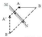 解答:解:从A点向平面镜引垂线并延长至A′,使A、A′到平面镜的距离相等,同理作出B点的对称点B′,用虚线连接A′B′,即为物体AB的像.