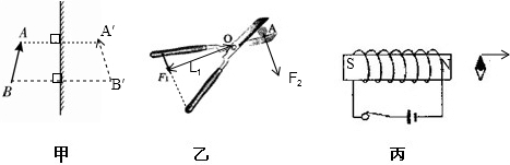 (1)作出甲图中物体AB在平面镜中所成的像A′B′.