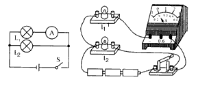 (2)(3分)在方框中画出灯泡L1和灯泡L2并联,电流表测灯泡L1电流,S为总开关的电路图,,并完成实物连接图。