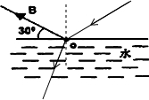 解:(1)过入射点垂直界面作出法线,在空气中法线右侧斜向上作出入射光线,并使反射角等于入射角,反射光线与水面的夹角为30°,则反射角为90°-30°=60°,则入射角也为60°,反射光线与水平面的夹角为30°,