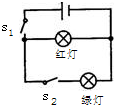 分析:S1、S2都闭合时两灯都发光,只闭合S1时,红灯发光,绿灯不发光,说明灯泡独立工作、互不影响即为并联;且S2控制绿灯;只闭合S2时,两灯均不发光说明开关S1位于干路控制整个电路.