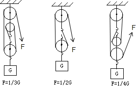 分析:不计滑轮质量及转动摩擦,拉力是物体重力的几分之一,动滑轮就有几段绳子承担物重.