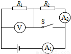 解答:解:当电键断开时,电阻R1、R2串联,电压表测量电阻R1两端的电压,两电流表都测电路中的电流;