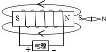(3)根据右手定则,伸出右手,让右手的大拇指指示螺线管的N极(螺线管的右端),四指弯曲所指的方向为电流的方向.所以,电流由最左端的导线流入,即电源的左端为正极,右端为负极.