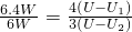 已知:P1=6.4W,P2=6W,I=1.6A,U1:U2=4:3