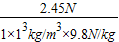 (2)石块受到的浮力F浮=G-F=4.9N-2.45N=2.45N;