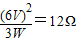 【答案】分析:由功率公式可求得灯泡的电阻;由欧姆定律可求得通过灯泡的电流;由功率公式可求得电压为3V时的实际功率.