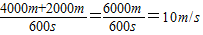 解答:解:已知:V1=8m/s,t1=500s,V2=20m/s,t2=100s,