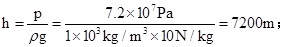 (1)若“蛟龙号”能承受的最大压强是7.2×107Pa,则它能下潜的最大深度是多少?(不考虑大气压)