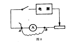 做电学实验时需要测量约0.5安的电流,但是实验室内当时只有一个量程为0.3安的电流表.如果手边有12伏学生电源、0~50欧的滑动变阻器、电炉用的电阻丝,以及导线和开关,有什么简单办法可以把电表的量程临时地近似改为0.6安?画出电路图,简述操作步骤。