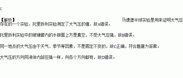 A. 马德堡半球实验是用来测量大气压数值的一个实验