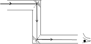 如图是潜望镜的示意图,请画出一条光线经过反射后到达人眼的过程: