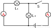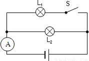 (2)两灯是并联关系,开关S控制灯泡L1,电流表测量干路上的电流,然后根据实物图画出电路图如下:
