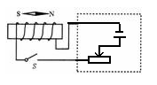 请按要求将图中的电磁铁连入你设计的电路中(在方框内完成)。要求:A.电路能改变电磁铁磁性的强弱;B.电路接通后能使小磁针静止在图示位置。