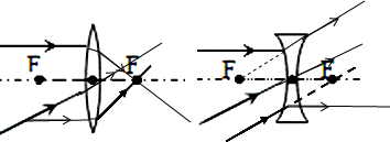 ④指向另一侧焦点的光线经凹透镜折射后折射光线平行于主光轴射出.
