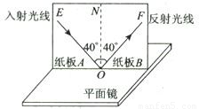 【答案】分析:(1)由光的反射定律知,反射角等于入射角,都为40°.