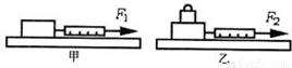 如图甲所示,将木块平放在木板上,用弹簧测力计水平匀速拉动木块,读出测力计的示数F1.