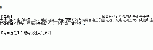 电动车为人们的出行提供了方便,但违规改造、非正常使用和内部故障都可能引起自燃,下列情况不可能引起自燃的是 ( )