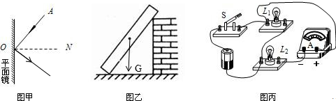 (1)如图甲所示,AO为入射光线,ON为法线.请画出对应入射光线的反射光线.