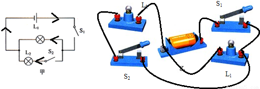 解答:解:根据电流流向法,先从正极出发依次串联开关S1、开关S2、灯泡L2回到负极,然后把灯泡L1并联灯泡L2的左端和开关L2的右端即可,如下图所示: